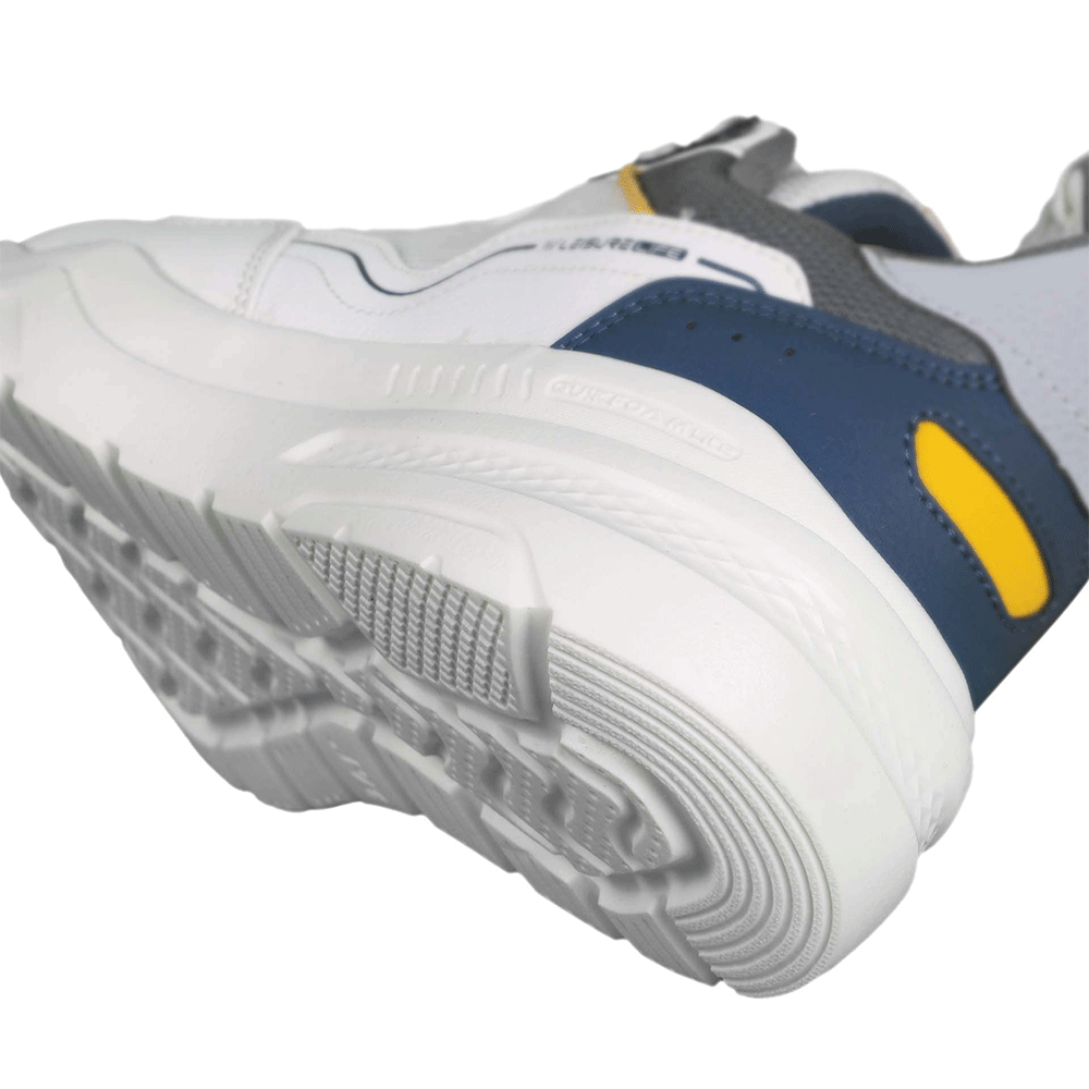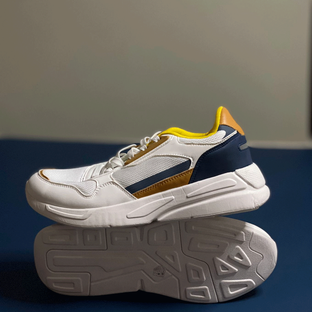 ویژگیها: دارای طراحی چند رنگ (سفید، سرمهای، زرد و قهوهای) بوده و از بند برای بستن استفاده میکند، که آن را از مدلهای “اسلیپآن” متمایز میکند.