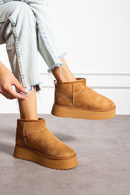 نیم بوت زنانه ضخیم خز Tefis Tan جیر برند Marjinal City(شهر حاشیه ای) رنگ قهوه ای